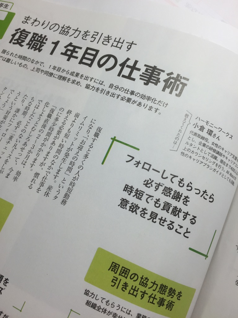 公開日: 2018年3月13日 CHANTO 4月号 育休復職1年目の仕事術でアドバイスフル解像度 (768 × 1024)